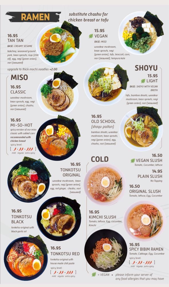 On the menu, you’ll discover a variety of options, including soy-free and vegan dishes. Signature items like the tonkotsu ramen boast rich, delectable broth, while maezoba showcases both traditional and contemporary flavors. Don’t miss the tantalizing chicken karaage and tantalizing desserts like mochi ice cream.